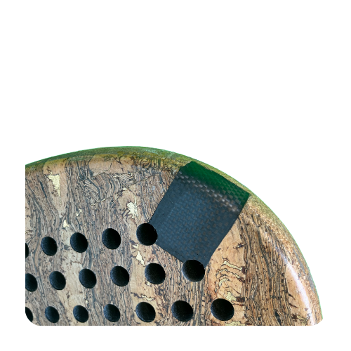 Cork Padel - Premium Hybrid II har et dråbeformet hoved og et balancepunkt, der er placeret 26 cm oppe på battet.