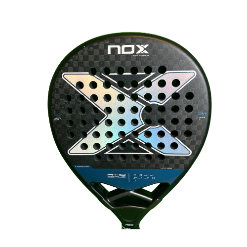 NOX AT10 Genius 12K by Agustín Tapia 2024 er et topklasse padelbat designet i samarbejde med den professionelle spiller Agustín Tapia. Dette bat er perfekt til spillere, der søger en balance mellem kontrol og kraft. Med sin dråbeform og 12K carbon overflade giver det en enestående boldføling og kraftfulde slag. Den bløde HR3-kerneteknologi sikrer en hurtig respons og optimal støddæmpning, hvilket gør det ideelt til både aggressive og præcise spil. NOX AT10 Genius 12K er udstyret med anti-vibrationsteknologi, der reducerer belastningen på armen, og det er et ideelt valg for spillere, der vil præstere på højeste niveau.