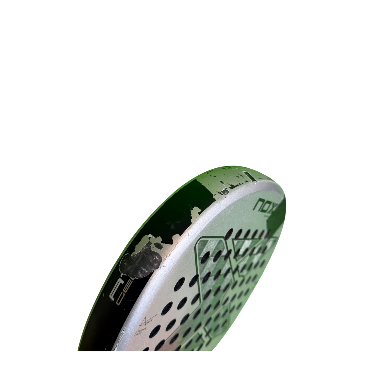 Nox AT10 Genius 18K 2024 er den opdaterede version af Agustin Tapias padelbat, nu med revolutionerende teknologier og materialer. Det dråbeformede hoved giver både lækker kontrol og eksplosiv power. Overfladen består af 18K aluminiserede carbonfibre, der sikrer høj performance uanset temperaturændringer. Rough Surface teknologi med silicasand forbedrer spin og boldføling. MLD Black EVA flerlagskernen optimerer både defensive og offensive slag. Carbon Frame og DCS teknologier øger rammens slidstyrke. EOS Flap forbedrer aerodynamik og manøvredygtighed, mens Pulse System og Custom Grip reducerer vibrationer. Oversize Grip og Smart Strap sikrer optimalt greb og nem udskiftning.