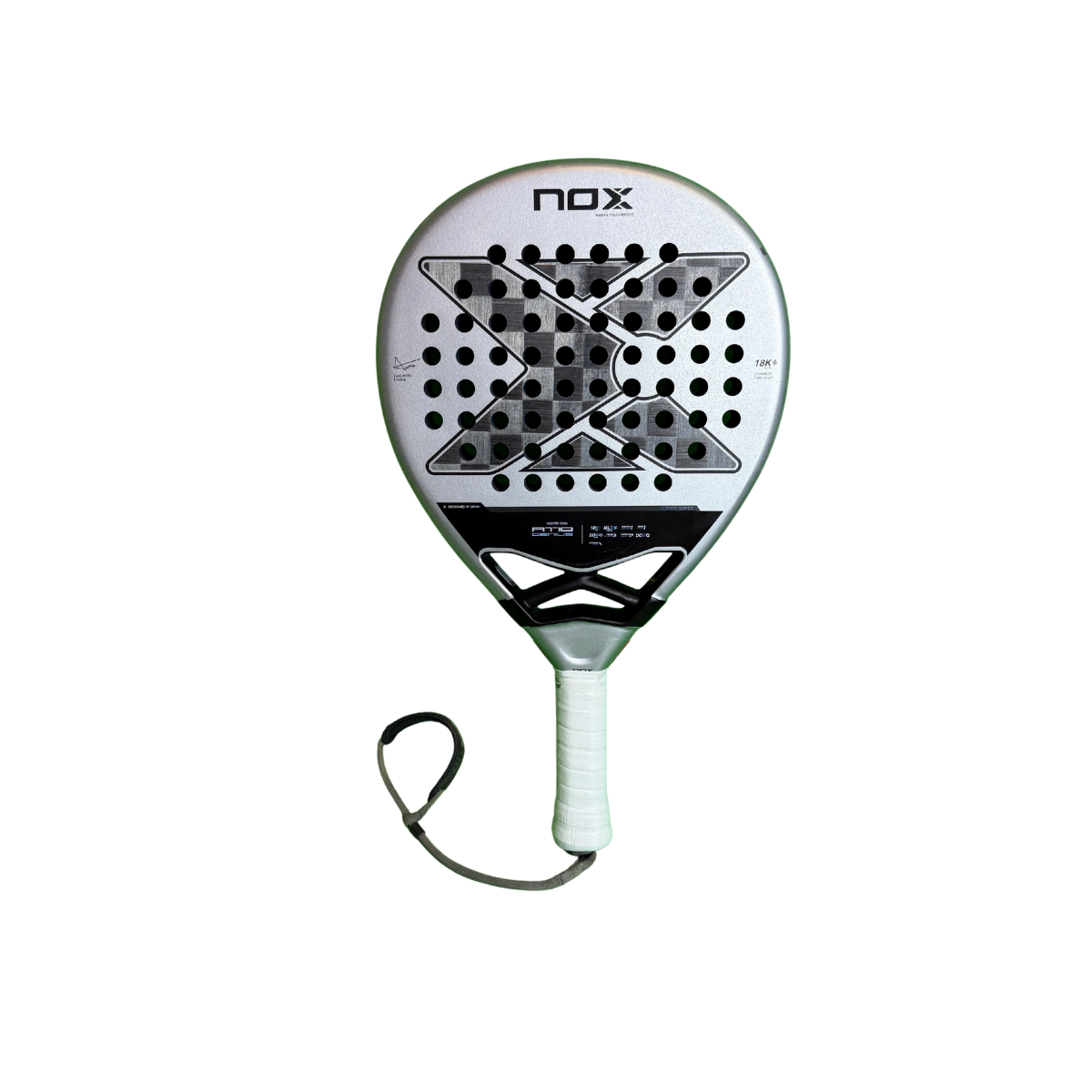 Nox AT10 Genius 18K 2024 er den opdaterede version af Agustin Tapias padelbat, nu med revolutionerende teknologier og materialer. Det dråbeformede hoved giver både lækker kontrol og eksplosiv power. Overfladen består af 18K aluminiserede carbonfibre, der sikrer høj performance uanset temperaturændringer. Rough Surface teknologi med silicasand forbedrer spin og boldføling. MLD Black EVA flerlagskernen optimerer både defensive og offensive slag. Carbon Frame og DCS teknologier øger rammens slidstyrke. EOS Flap forbedrer aerodynamik og manøvredygtighed, mens Pulse System og Custom Grip reducerer vibrationer. Oversize Grip og Smart Strap sikrer optimalt greb og nem udskiftning.